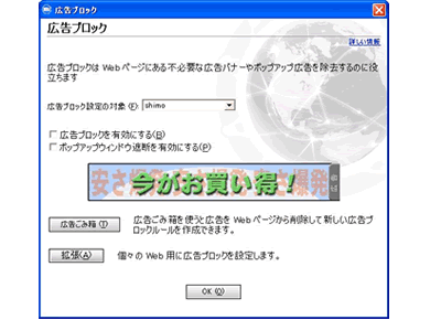 | ■2)の削除方法の手順 1、広告ブロック機能の設定をクリックします。 ![]() |